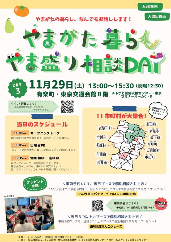 主催:(一社)ふるさと山形移住・定住推進センター、山形県